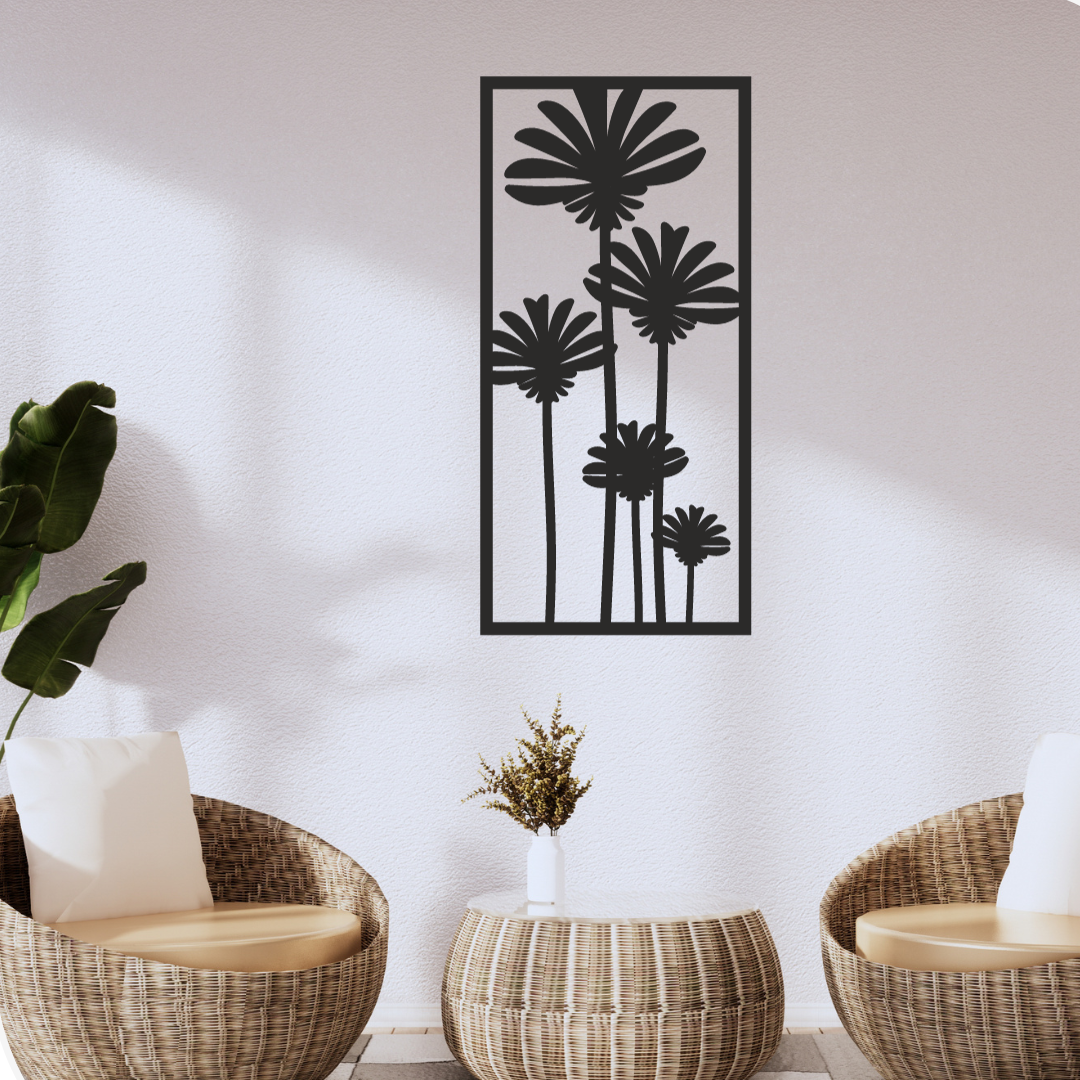 Dit abstracte wandpaneel met het silhouette van Pandelion bloemen is gemaakt van staal. Het geeft je interieur net even wat extra. Verkrijgbaar in verschillende afmetingen en kleuren. Geleverd inclusief bevestigingsmateriaal. De kleuren zwart, goud en koper worden gesneden uit staal en voorzien van een kleur door middel van poedercoating.