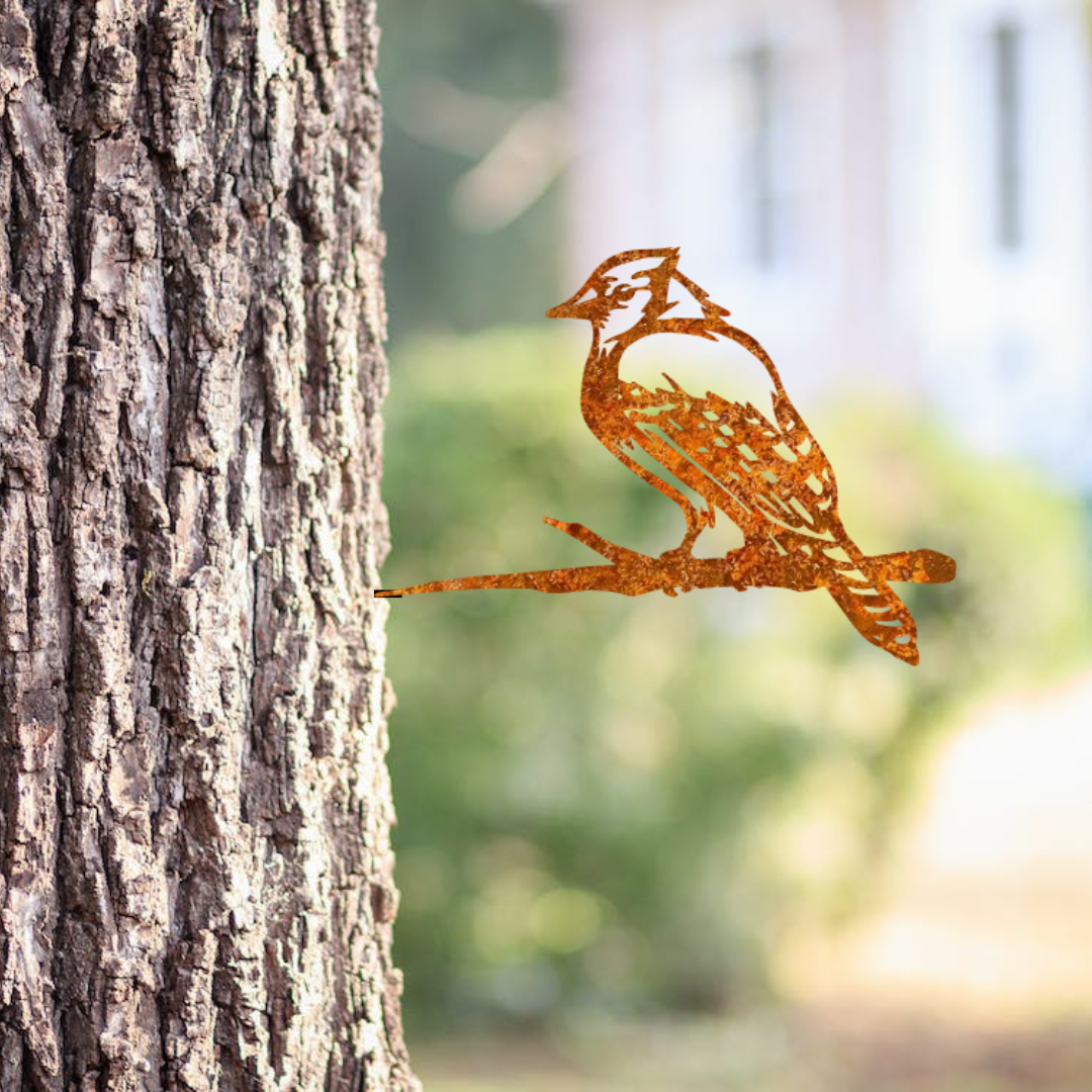 Deze Blauwe Gaai vogel voor in je tuin of als stake in een boom. Een leuke toevoeging voor elke tuin. De gaai komt in cortenstaal, dit kan erg goed tegen de elementen en daardoor gaat ze erg lang mee.