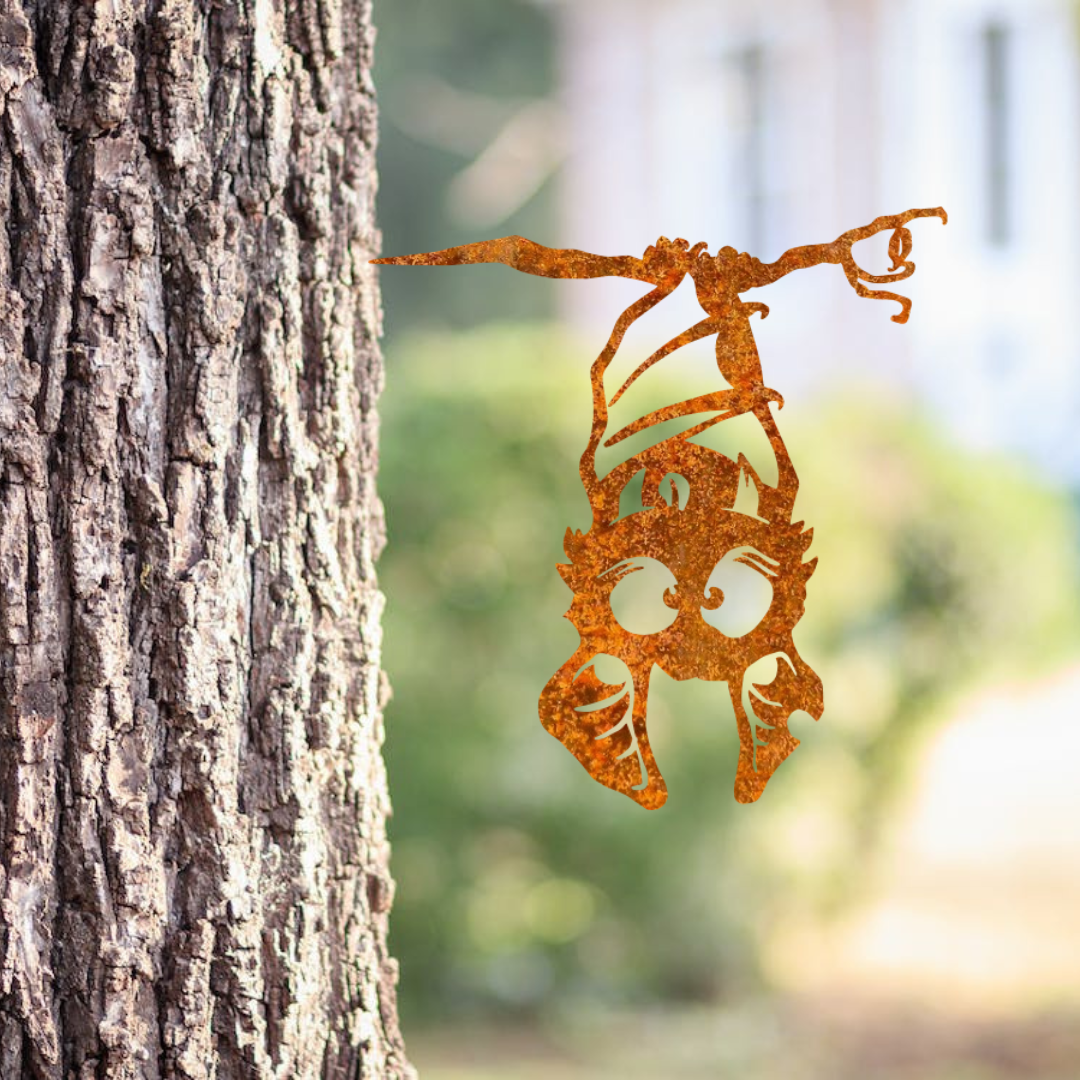 Deze ondeugende Nacht Vleermuis voor in je tuin of als stake in een boom. Een leuke toevoeging voor elke tuin. De vleermuis komt in cortenstaal, dit kan erg goed tegen de elementen en daardoor gaat ze erg lang mee.