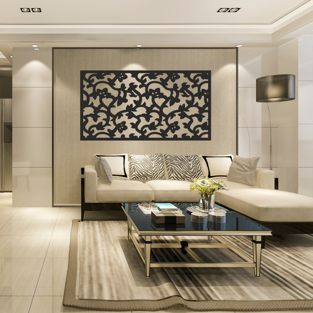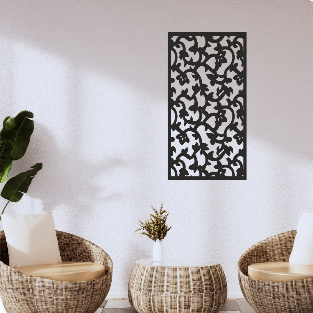 Abstract paneel met mooie patronen en ornamenten, een toevoeging voor elk interieur. Verkrijgbaar in verschillende afmetingen en kleuren. Geleverd inclusief bevestigingsmateriaal. De kleuren zwart, goud en koper worden gesneden uit staal en voorzien van een kleur door middel van poedercoating.