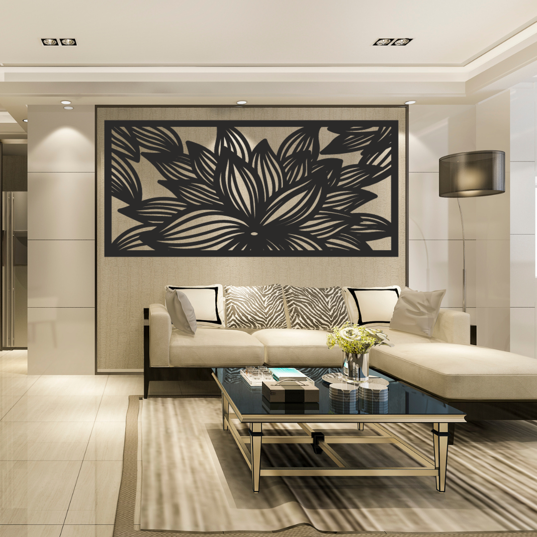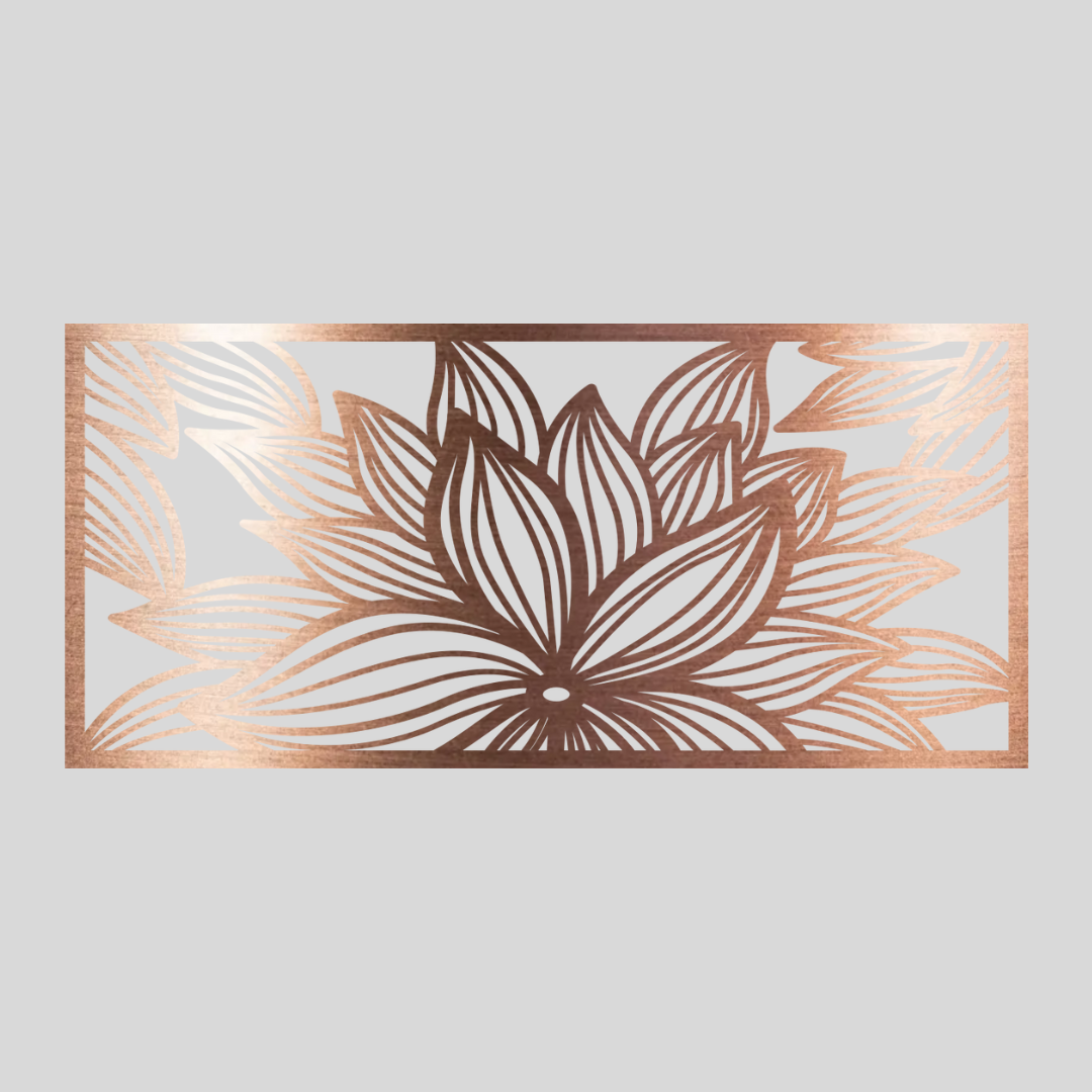 Patroon van Lelie, verkrijgbaar als XXL wandpaneel van staal. In extra grote afmeting zodat het een echt statement is in jouw interieur. Verkrijgbaar in verschillende afmetingen en kleuren. Geleverd inclusief bevestigingsmateriaal. De kleuren zwart, goud en koper worden gesneden uit staal en voorzien van een kleur door middel van poedercoating.